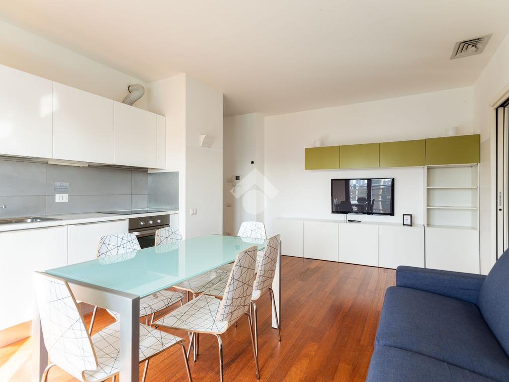 A pochi passi dall'Università Bicocca, proponiamo un accogliente trilocale situato in un contesto residenziale recente, circondato da un ampio parco condominiale. L'appartamento, posto all'ottavo piano, è caratterizzato da una doppia esposizione est-sud che garantisce un'ottima illuminazione naturale. L'immobile è composto da una zona giorno con angolo cottura e ampio balcone comunicante con la cameretta, disimpegno notte con camera matrimoniale e bagno finestrato con doccia. Completano la proprietà la cantina di pertinenza e la possibilità di un box doppio ad €45.000. L'appartamento sarà libero a breve, si presenta completamente arredato ed in ottime condizioni, dotato di teleraffrescamento e teleriscaldamento a pavimento. Questa soluzione abitativa è ideale per chi cerca un ambiente moderno e funzionale, comodamente collegato al centro città ed ai servizi essenziali del quartiere.