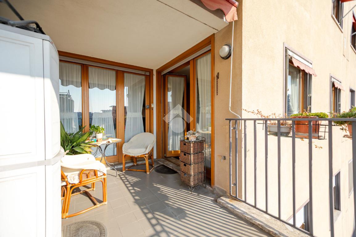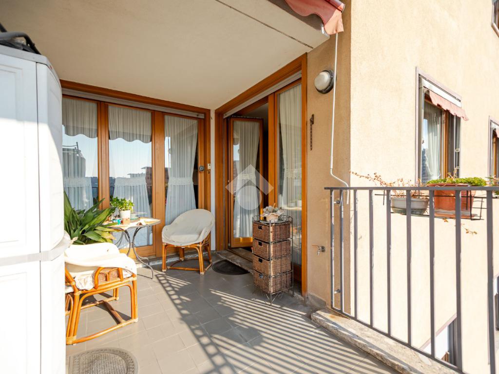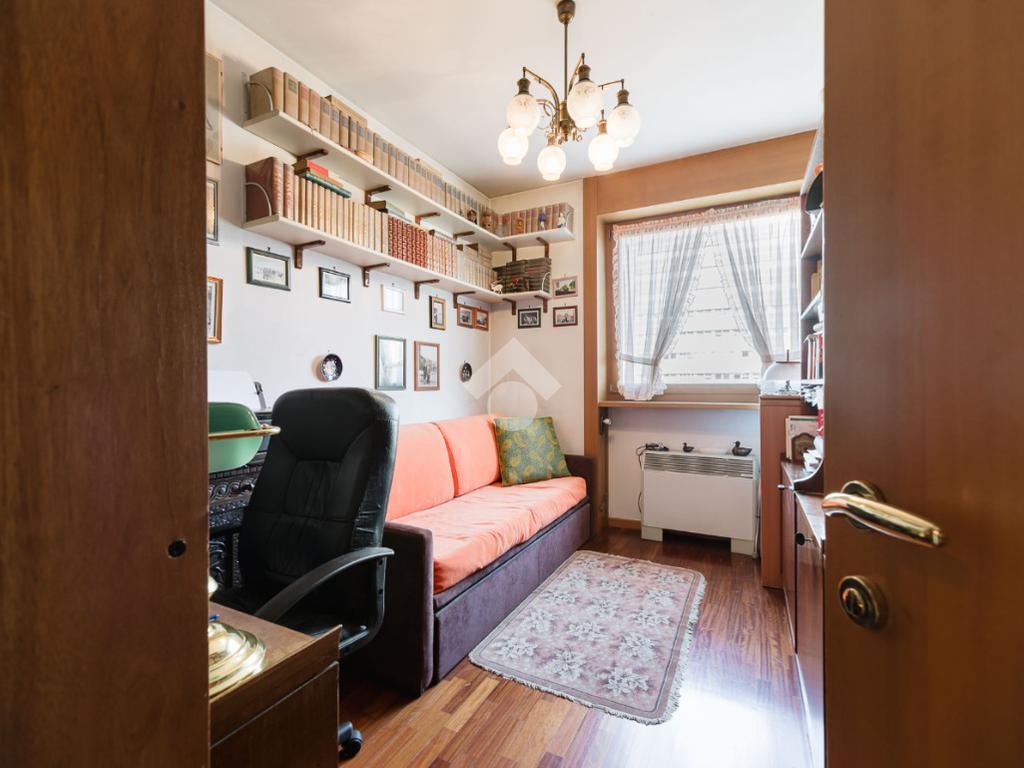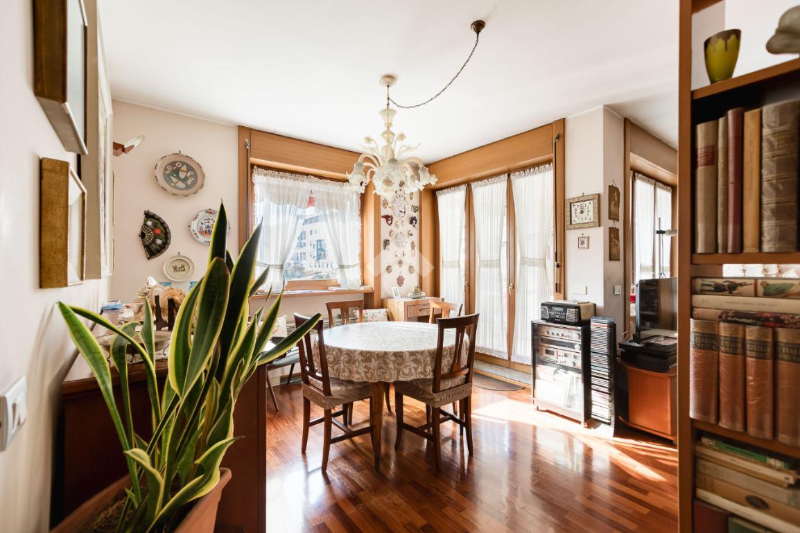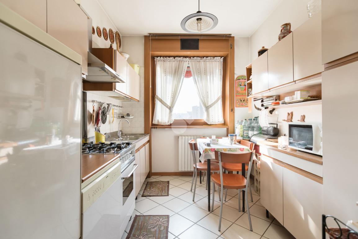 In contesto condominiale con servizio di portineria, proponiamo un ampio trilocale situato al terzo piano. L'immobile offre spazi ben distribuiti e luminosi ed è così composto: ingresso, spazioso soggiorno da cui si accede al terrazzo loggiato, cucina abitabile, disimpegno zona notte con camera da letto e bagno en suite finestrato, cameretta, ripostiglio e secondo bagno cieco. Completano la soluzione la cantina di pertinenza e la possibilità di un box singolo ad Euro 25.000. L'appartamento è in buone condizioni interne, dotato di teleriscaldamento e teleraffrescamento con fan - coil.
